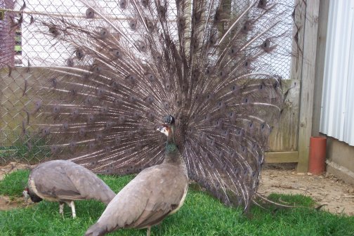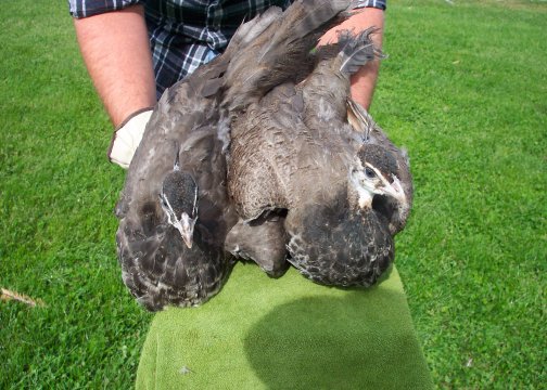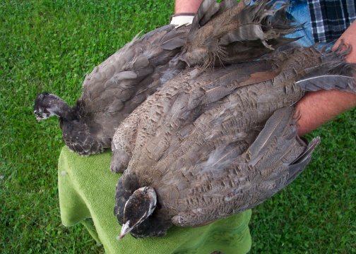 Pair of 3 month old chicks shown below; Male on right, female on left