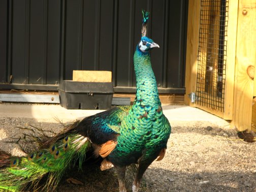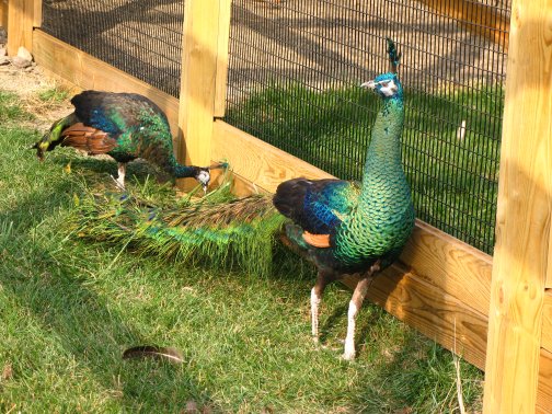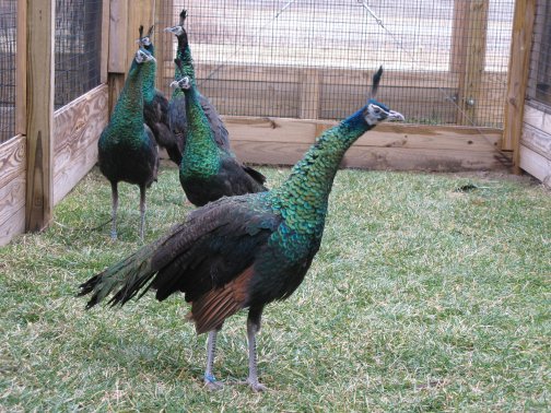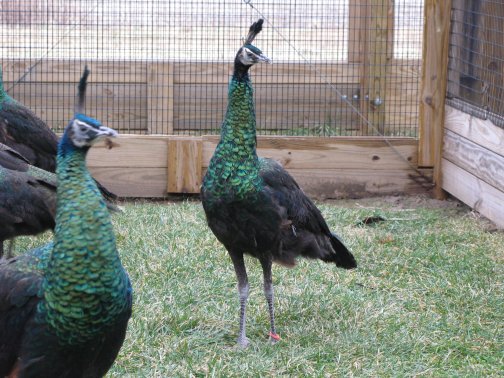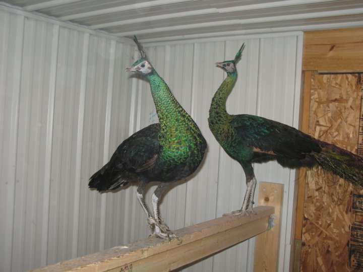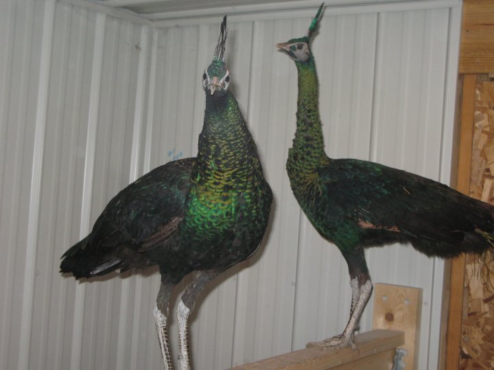 Green, Muticus-Spicifer (Burmese)Please refer to our article on Pavo-Muticus Peafowl (Green) to understand the special care requirements for this peafowl variety. 2 year old male shown below Yearling chicks shown below 8 month old chicks shown below Unrelated bloodline, '05 hatch breeder pair shown below Back to Peafowl Pictures © 2010, Hopkins' Alternative LivestockWeb site designed and maintained by Lisa Hopkins |