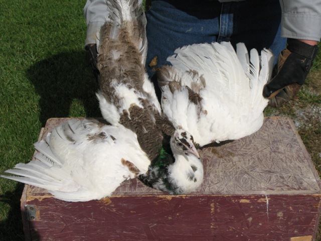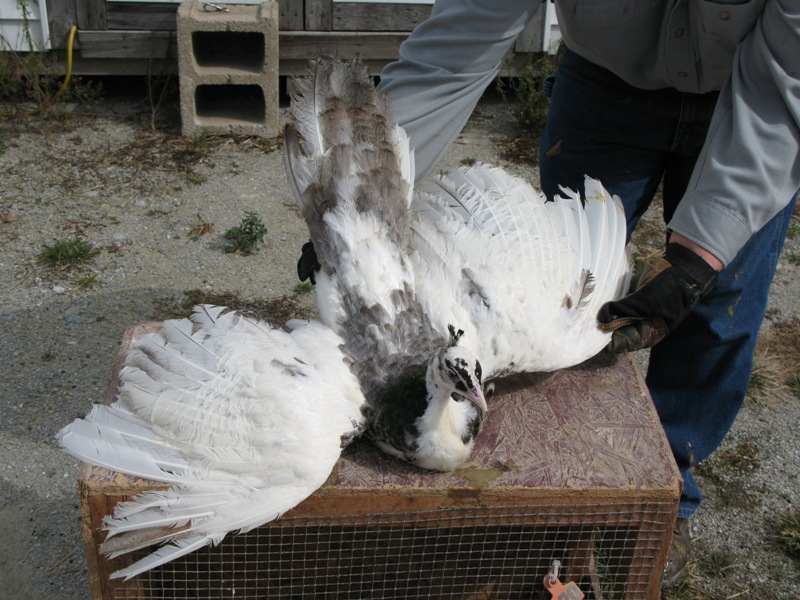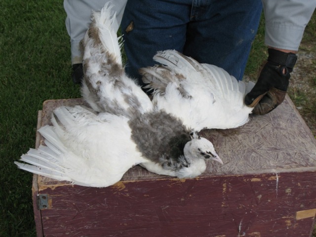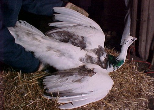 India Blue Silver PiedYearling male shown below 6 month old chicks shown below Chick shown below The following is a look at silver pied genetics. For more details, see our Genetics section. Silver Pied X Silver Pied = 25% White; 25% Dark Silver Pied White Eyed; 50% Silver Pied Silver Pied X White = 50% Silver Pied; 50% White Dark Silver Pied White Eyed X Silver Pied = 50% Silver Pied; 50% Dark Silver Pied White Eyed Dark Silver Pied White Eyed X White = 100% Silver Pied Back to Peafowl Pictures © 2010, Hopkins' Alternative LivestockWeb site designed and maintained by Lisa Hopkins |