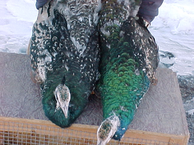 Midnight Black Shoulder2 year old male shown below Midnight BS hen on left, black shoulder hen on right Yearling pair shown below Midnight BS male left, black shoulder male on right (7 month old chicks) Black shoulder male on left, Midnight BS male on right (Yearlings) Black shoulder male on left, Midnight BS male on right (3 month old chicks) Back to Peafowl Pictures © 2005, Hopkins' Alternative LivestockWeb site designed and maintained by Lisa Hopkins |