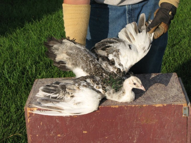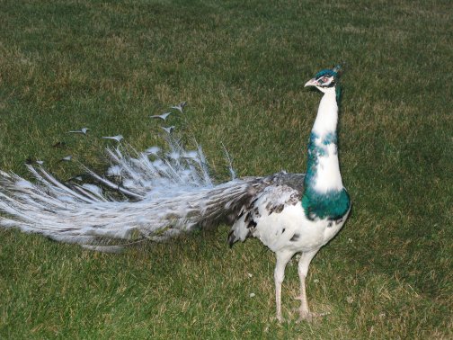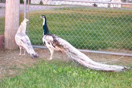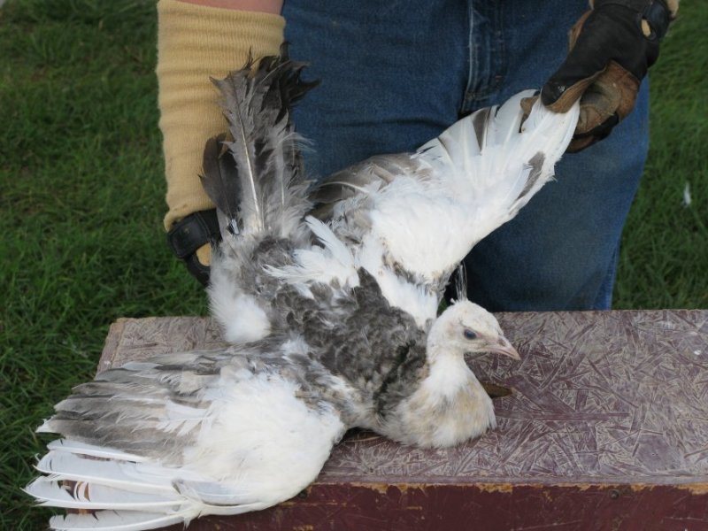 Black Shoulder Silver Pied6 month old chicks The following is a look at silver pied genetics. For more details, see our Genetics section. Silver Pied X Silver Pied = 25% White; 25% Dark Silver Pied White Eyed; 50% Silver Pied Silver Pied X White = 50% Silver Pied; 50% White Dark Silver Pied White Eyed X Silver Pied = 50% Silver Pied; 50% Dark Silver Pied White Eyed Dark Silver Pied White Eyed X White = 100% Silver Pied Back to Peafowl Pictures © 2010, Hopkins' Alternative LivestockWeb site designed and maintained by Lisa Hopkins |
