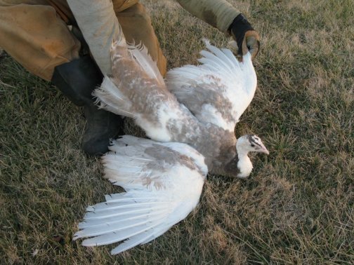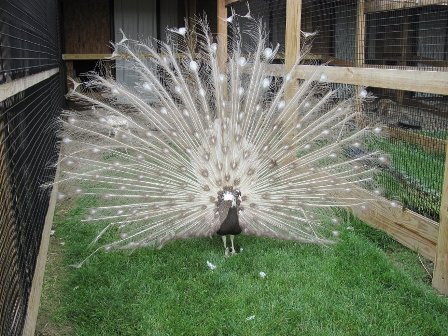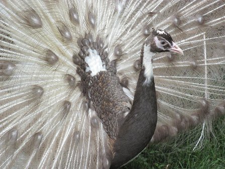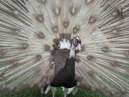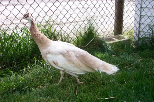 Cameo Pied White Eyed2 year olds Yearlings shown below Chick shown below For details on genetics of pied peafowl, see our Genetics section. Back to Peafowl Pictures © 2010, Hopkins' Alternative LivestockWeb site designed and maintained by Lisa Hopkins