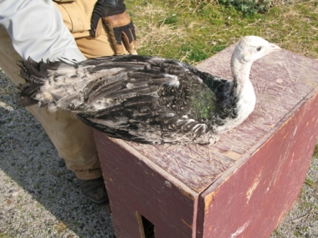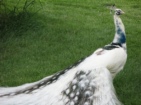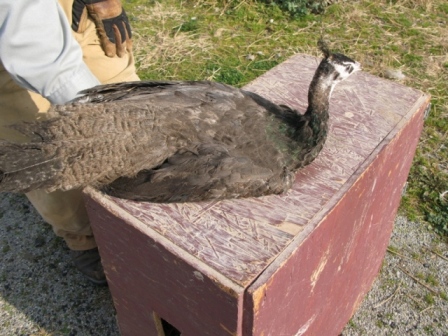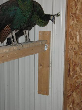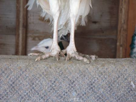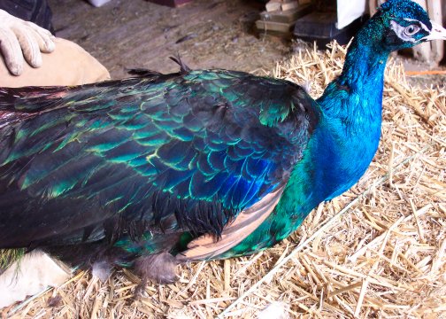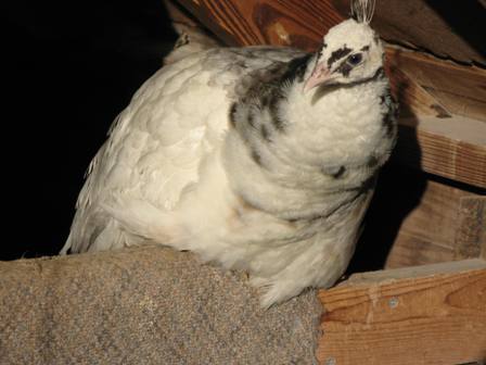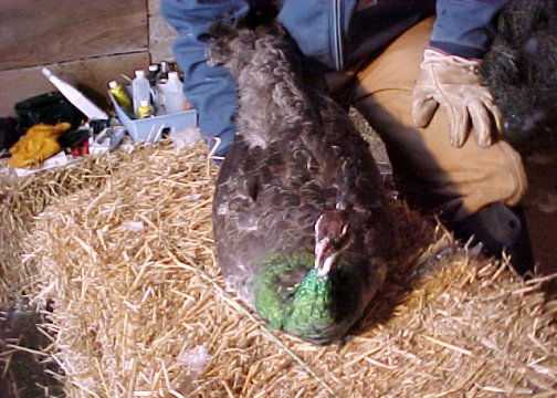FAQFrequently Asked Questions about PeafowlQuestion: What is the difference between black shoulder and blue peafowl? Answer: Blue Hen Black Shoulder Hen Blue Male Black Shoulder Male Question: What do peafowl eat? Answer: Breeders eat a combination of Pheasant breeder pellets with 19% protein, small bite size dry dog food with 21% protein, and shelled corn (corn in the winter months only). Treats are lettuce, tomatoes, grapes, raisins, and bread. Adolescents (4 months to 1 1/2 yrs) eat a combination of chicken grower pellets with 18% protein, small bite size dry dog food with 21% protein, and shelled corn (corn in the winter months only). Chicks (1 day to 4 months) eat medicated chicken starter crumbles with 20% protein. Question: How long to peafowl live? Answer: 50+ years!! Question: How many days does it take for peafowl eggs to hatch? Answer: 27 to 30 Question: How old do peafowl need to be in order to breed? Answer: 2 years (Note: As long as the male's tail has a few eye feathers. If not, he will not be able to fertilize eggs.) Question: At what age does a peacock get his first long tail train? Answer: 3 years Question: What is the breeding season for peafowl? Answer: April to August Question: Does the male lose his tail every year? Answer: Yes, the male will molt the entire tail in late July or early August. Question: How often do peafowl need worming? Answer: Every 3 to 4 months. Especially, 1 to 2 months prior to the start of the breeding season and immediately following the end of the breeding season. See the Medications article for further details. Question: What is the recommended temperature for incubation? Answer: 99.5 degrees F. See the Incubation article for further details on Incubation. Question: What is the recommended humidity for incubation? Answer: 60% relative humidity or 86-87 degrees F wet bulb temperature. See the Incubation article for further details on Incubation. Question: How do I get peachicks to start eating and drinking? Answer: Peachicks are fed a medicated crumbled chicken starter feed which is easy for them to eat. Fresh water is provided in small quart jar waterers so that the chicks can easily drink without being able to drown themselves. For the first chicks of the season, a small glass marble is placed in a shallow feed dish so that the chicks will pick at the shiny marble and in turn, learn to pick at their feed. A marble is also added to the water, for the same reason. Older chicks teach younger chicks, so one chick is kept to teach the second batch to eat and drink and the cycle repeats for the rest of the season. Click here to see pictures of our peachicks. Question: How do I give peafowl medications orally (by mouth)? Answer: See our article on Oral Dosing. Question: How do I keep peafowl from flying up in trees? Answer: Clip one wing to keep peafowl from flying up in trees. Wing feathers will grow back in about 4 to 5 months. See our page on how to clip wings. Question: What is the best way to catch peafowl? Answer: The best way to catch peafowl in with a high quality net designed for poultry. The best ones to purchase have a tightly woven nylon mesh. This helps prevent injury to the birds. |