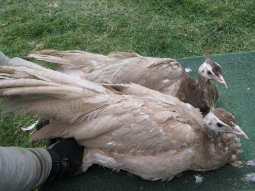 PeachIndia Blue Male split to Peach Peach White Eyed Breeding Hen Yearlings shown below 6 month old chicks For details on genetics of peach peafowl, see our Genetics section. Back to Peafowl Pictures © 2010, Hopkins' Alternative LivestockWeb site designed and maintained by Lisa Hopkins |