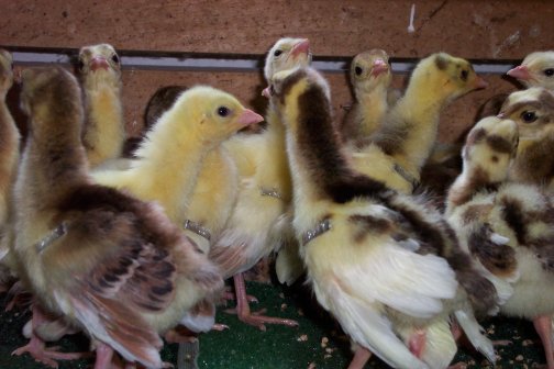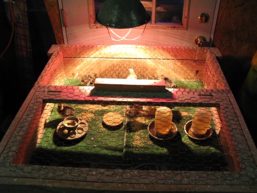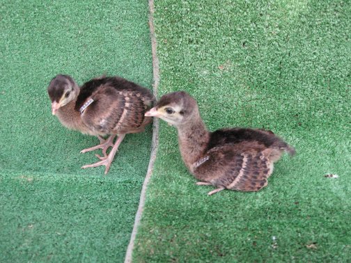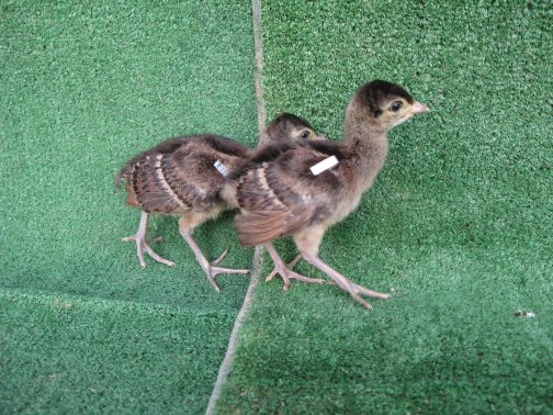 Peachicks!These photos show 2-3 day old peachicks in our homemade starter brooder. Chicks stay in this brooder until they are 7-10 days old before moving to our Petersime stack brooders. Please refer to our Current Pricelist for prices. © 2006, Hopkins' Alternative LivestockWeb site designed and maintained by Lisa Hopkins |