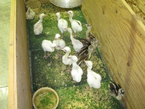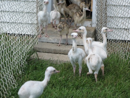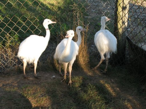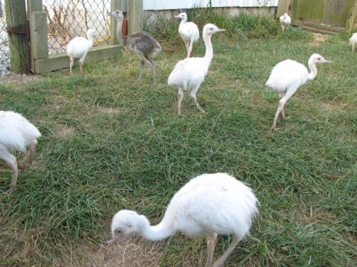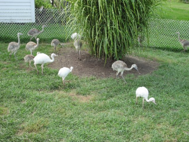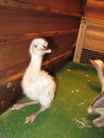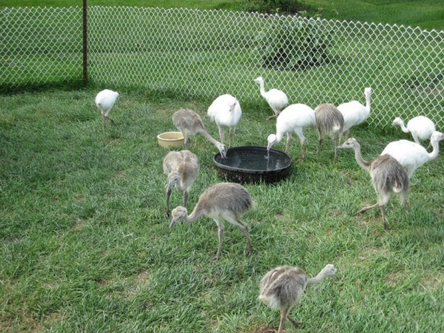 Rhea ChicksWe raise both white and grey rhea chicks. Please contact us for pricing and to place an order. Rhea chicks are normally available starting in July each year. Rhea chicks are shipped via Express Mail through the post office. Hopkins' Alternative Livestock does not accept any responsibility for the
