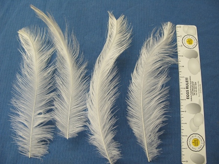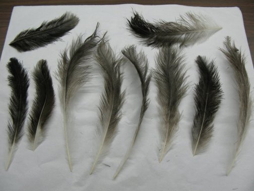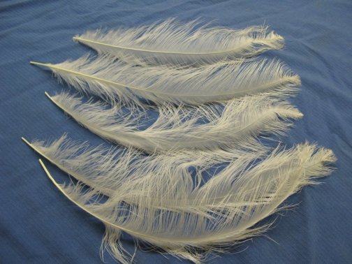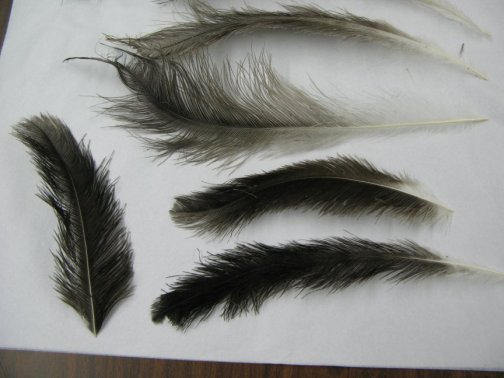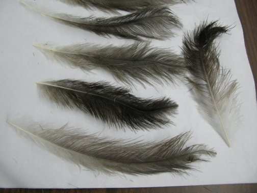 Rhea FeathersWe maintain an inventory of hundreds of feathers from white and grey rhea. Most of our feathers are clipped directly from the birds to ensure the best quality and color. Feather prices depend on type, quantity desired, and size. Please inquire for price information. White rhea feathers of all types have a wide variety of uses since they readily accept dyes. Some examples are fishing lures, hat plumes, feather dusters, and cat toys. Wing plumes Various body and wing covert feathers Grey rhea wing covert, small wing plume, and body feathers Shown below are a few examples of fishing flys & lures that have been tied with our feathers. Chris Taylor of PA Satu Susimaki of Upstream Adventures, Inc. © 2010, Hopkins' Alternative LivestockWeb site designed and maintained by Lisa Hopkins